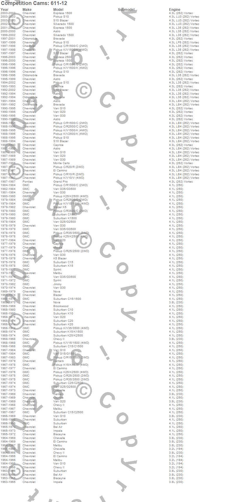 Astro, Bel Air, Biscayne, Blazer, Blazer K5, Bravada, Brookwood, C10 Suburban, C15 Suburban, C15/C1500, C15/C1500 Suburban, C1500, C1500 Pickup, C1500 Suburban, C20 Suburban, C25/C2500 Pickup, C25/C2500 Suburban, C2500 Pickup, C35/C3500 Pickup, C3500 Pickup more…