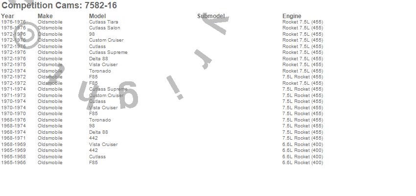 Below is an abreviated list of applications for the Magnum Push Rods.