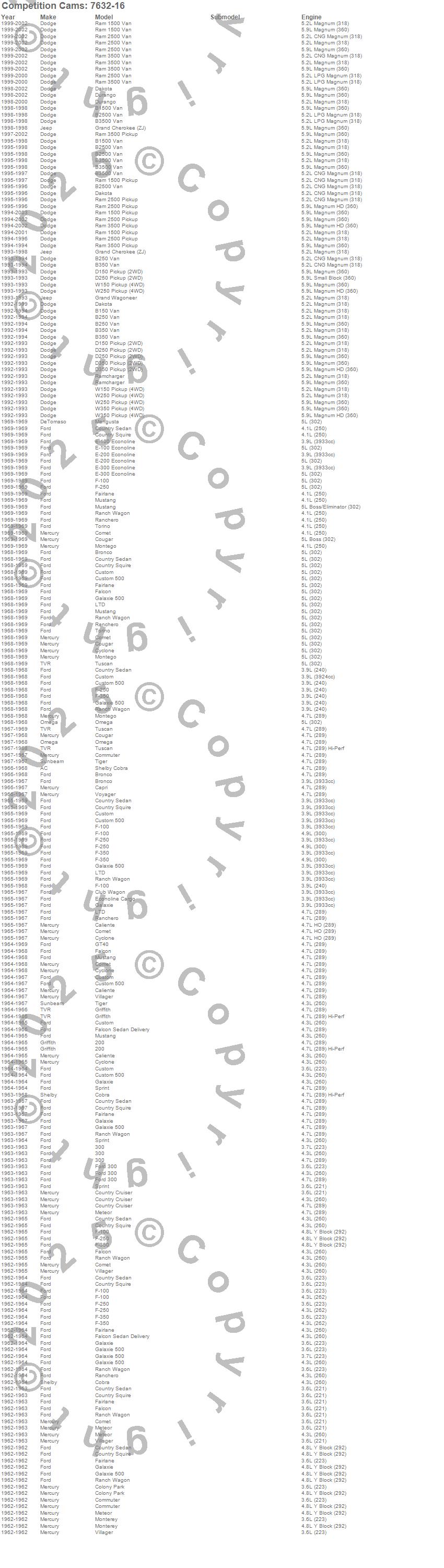 Below is an abreviated list of applications for the Magnum Push Rods.