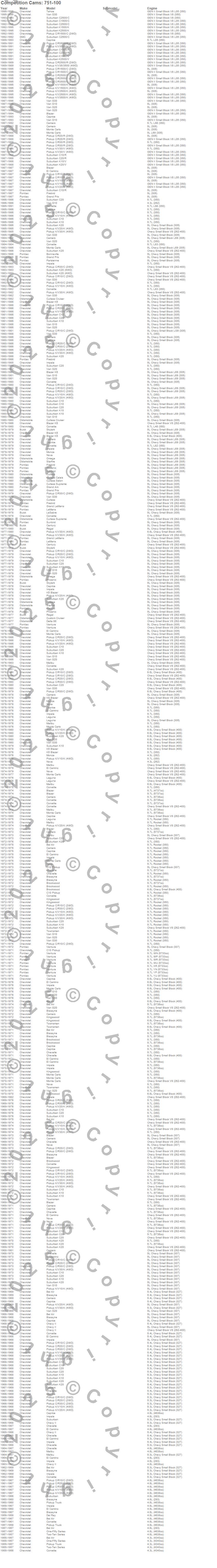 Bel Air, Biscayne, Blazer, Blazer K5, Bonneville, Brookwood, C10 Pickup, C10 Suburban, C1500, C1500 Pickup, C1500 Suburban, C20 Pickup, C20 Suburban, C2500 Pickup, C2500 Suburban, C30 Pickup, C3500 Pickup, Camaro, Caprice, Century more…