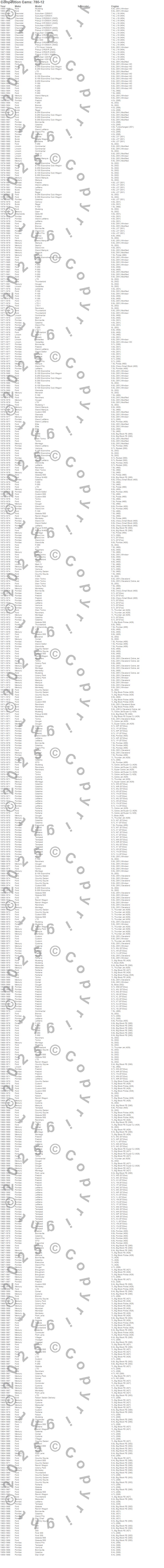 Bonneville, Breezeway, Bronco, Brougham, C1500, C1500 Pickup, C2500 Pickup, C2500 Suburban, C3500 Pickup, Caliente, Capri, Catalina, Catalina Ventura, Century, Club Cargo, Colony Park, Comet, Commuter, Continental, Cougar more…