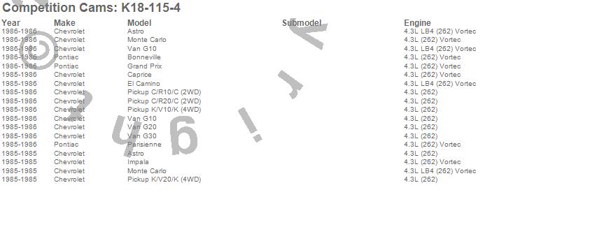 Below is an abreviated list of applications for the High Energy Camshaft Kit.