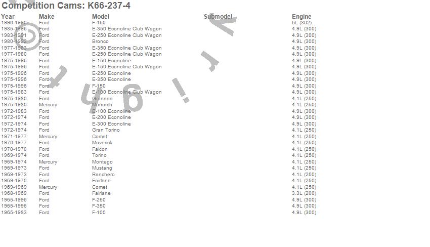 Below is an abreviated list of applications for the High Energy Camshaft Kit.