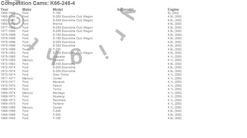 Below is an abreviated list of applications for the High Energy Camshaft Kit.