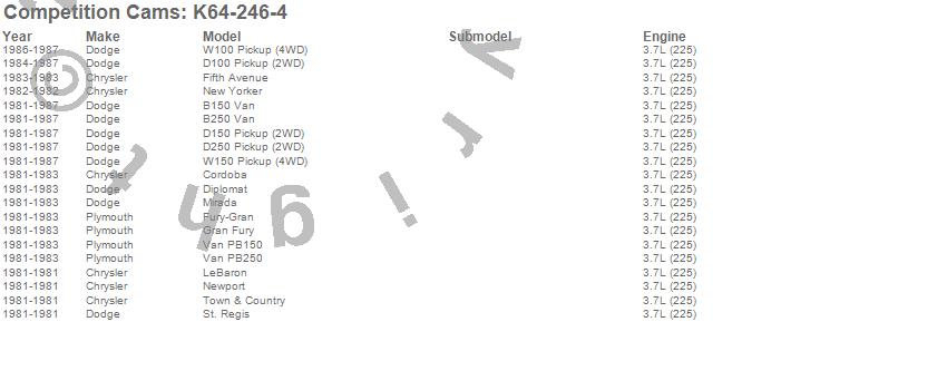 Below is an abreviated list of applications for the High Energy Camshaft Kit.