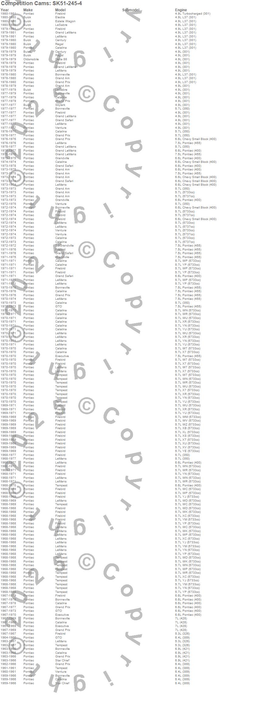 Below is an abreviated list of applications for the Magnum Camshaft Small Kit.