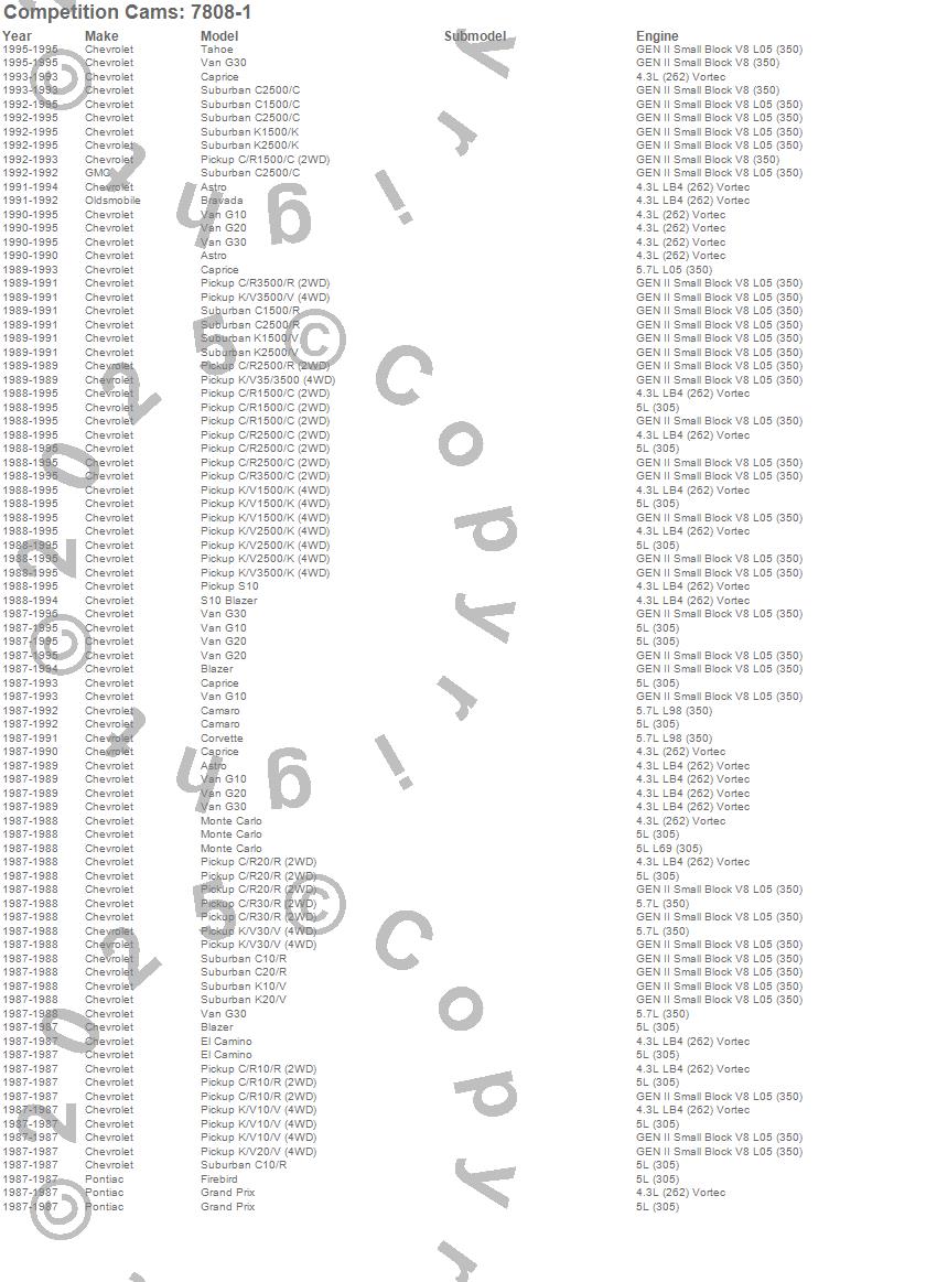 Astro, Blazer, Bravada, C1500, C1500 Pickup, C1500 Suburban, C2500 Pickup, C2500 Suburban, C3500 Pickup, Camaro, Caprice, Corvette, El Camino, Firebird, G10, G10 Van, G20, G20 Van, G30, G30 Van more…