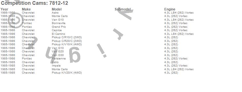 Astro, Bonneville, C10 Pickup, C20 Pickup, Caprice, El Camino, G10 Van, G20 Van, G30 Van, Grand Prix, Impala, K10 Pickup, K20 Pickup, Monte Carlo, Parisienne, Chevrolet, Pontiac, 1986, 1985 more…