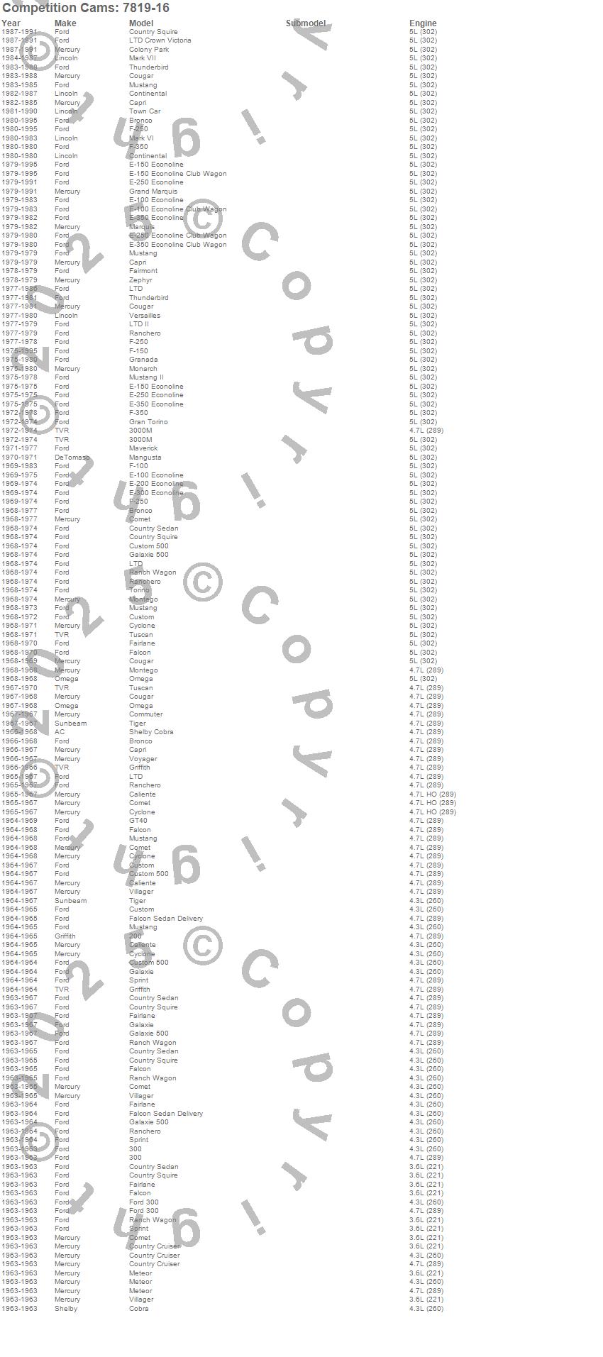200, 3000M, 412, 412i, Apollo, Avanti, Bronco, Caliente, Camaro, Capri, Club Cargo, Cobra, Colony Park, Comet, Commander, Commuter, Continental, Cougar, Country Cruiser, Country Sedan more…