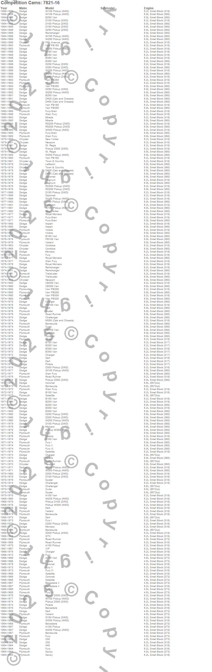 330, 440, 880, A100 Truck, A100 Van, Aspen, B100 Van, B150 Van, B200 Van, B250 Van, B300 Van, B350 Van, Barracuda, Belvedere, Belvedere II, CB300 Van, Challenger, Charger, Cordoba, Coronet more…