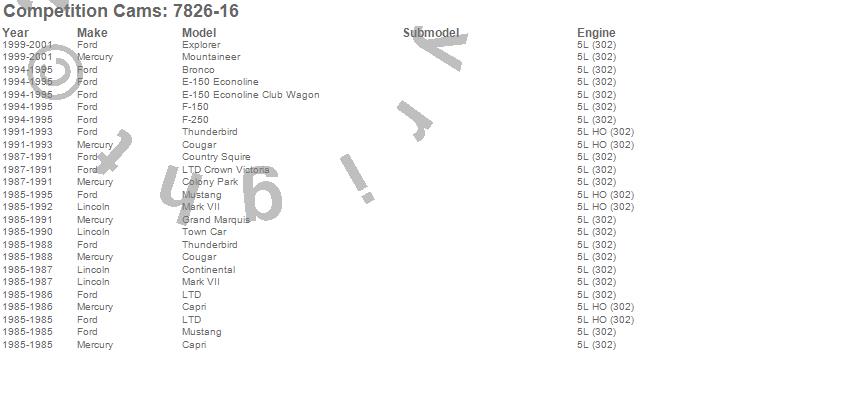Bronco, Capri, Colony Park, Continental, Cougar, Country Squire, E-150 Econoline, E-150 Econoline Club Wagon, F-150, F-250, Grand Marquis, LTD, LTD Crown Victoria, Mark VI, Mark VII, Marquis, Mustang, Thunderbird, Town Car, Ford more…