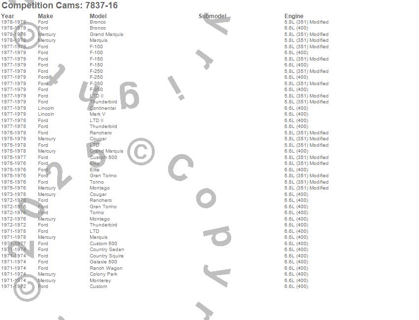 Bronco, Colony Park, Continental, Cougar, Country Sedan, Country Squire, Custom, Custom 500, Cyclone, Elite, F-100, F-150, F-250, F-350, Galaxie 500, Gran Torino, Grand Marquis, LTD, LTD II, Mark V more…