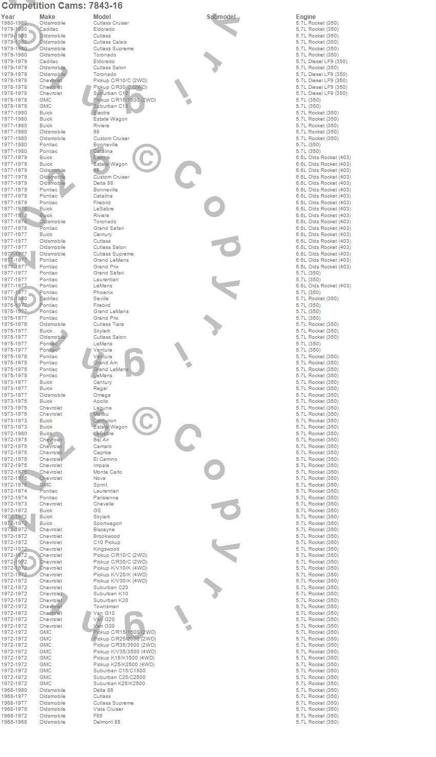 Below is an abreviated list of applications for the High Energy Push Rods.
