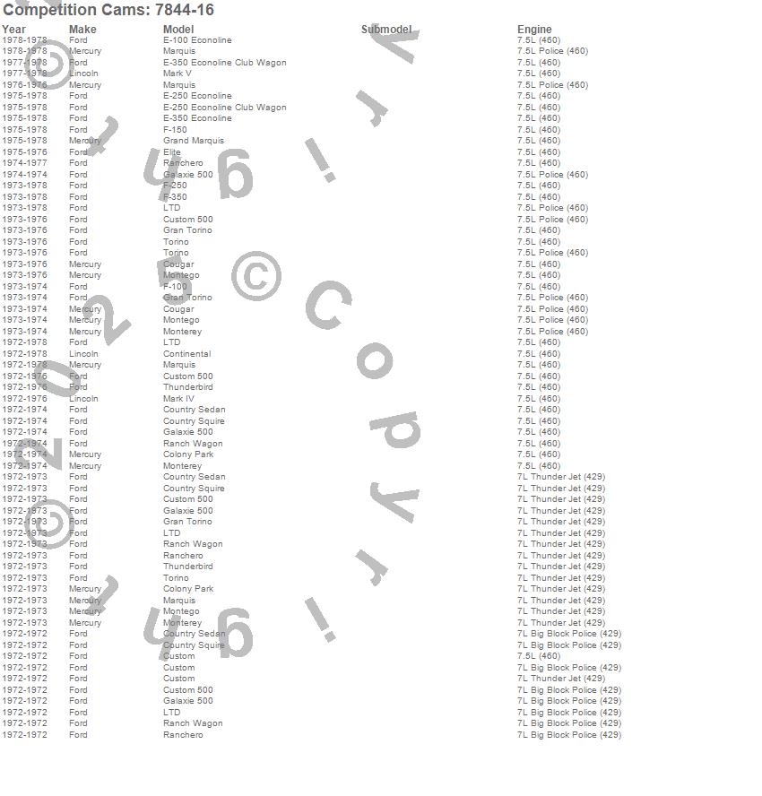 Colony Park, Continental, Cougar, Country Sedan, Country Squire, Custom, Custom 500, Cyclone, Elite, F-100, F-150, F-250, F-350, Fairlane, Galaxie 500, Gran Torino, Grand Marquis, LTD, Marauder, Mark III more…