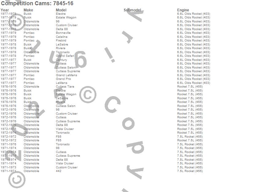 Below is an abreviated list of applications for the High Energy Push Rods.