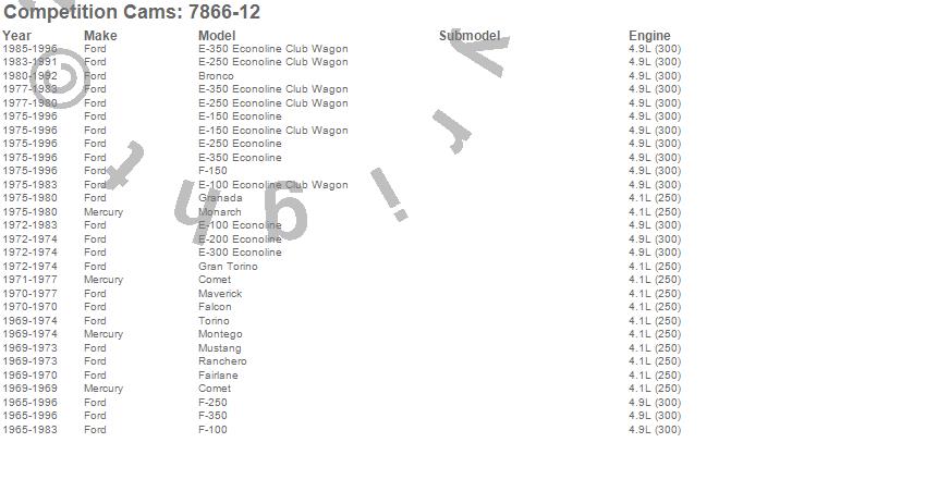 Bronco, Comet, E-100 Econoline, E-150 Econoline, E-150 Econoline Club Wagon, E-200 Econoline, E-250 Econoline, E-250 Econoline Club Wagon, E-300 Econoline, E-350 Econoline, E-350 Econoline Club Wagon, F-100, F-150, F-250, F-350, Fairlane, Falcon, Gran Torino, Granada, Maverick more…