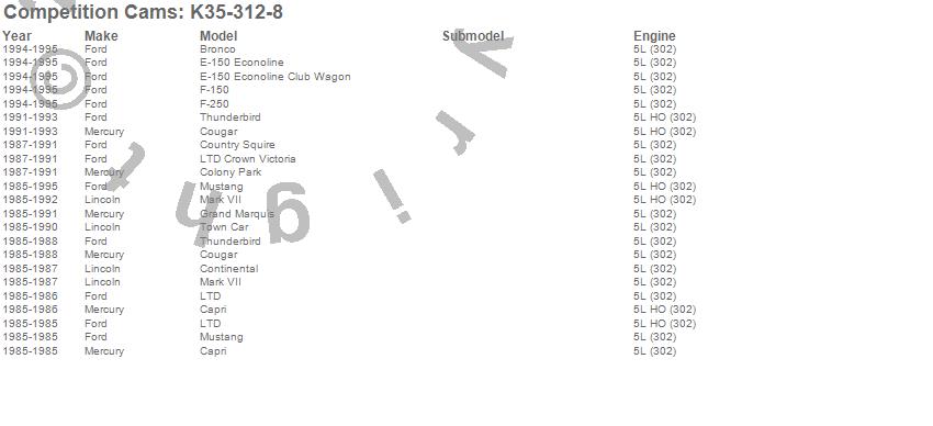 Below is an abreviated list of applications for the Magnum Camshaft Kit.