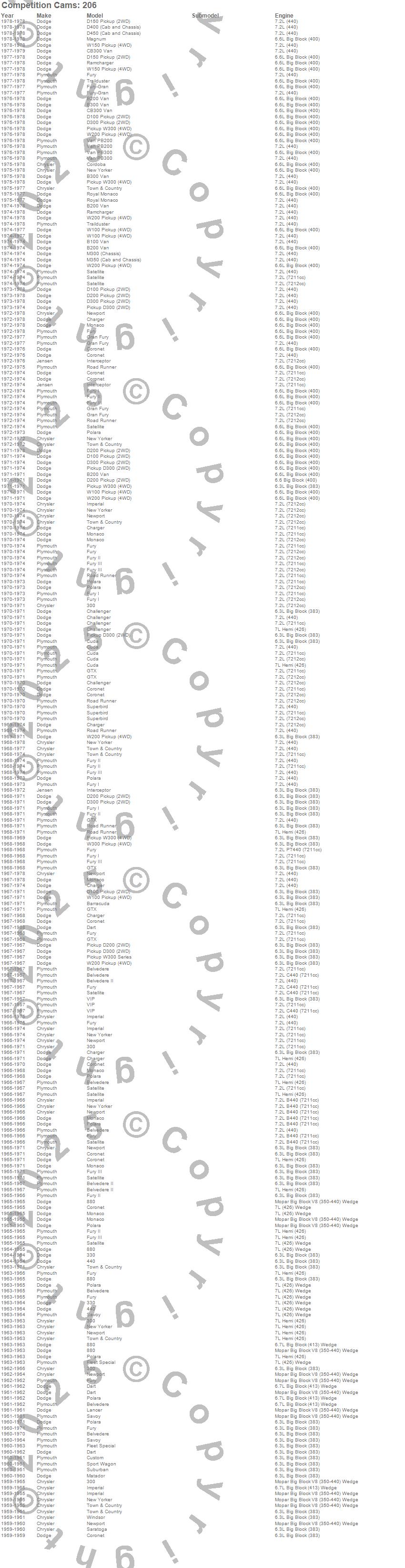 300, 330, 440, 880, B100 Van, B200 Van, B300 Van, Barracuda, Belvedere, Belvedere II, CB300 Van, Challenger, Charger, Cordoba, Coronet, Cuda, Custom, D100 Pickup, D150 Pickup, D200 Pickup more…