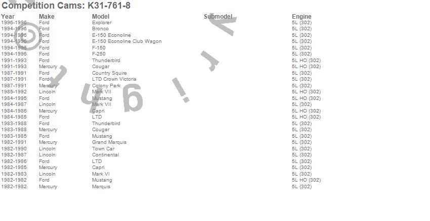 Below is an abreviated list of applications for the Magnum Camshaft Kit.
