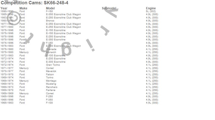 Below is an abreviated list of applications for the High Energy Camshaft Small Kit.