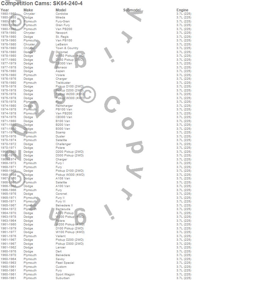 Below is an abreviated list of applications for the High Energy Camshaft Small Kit.