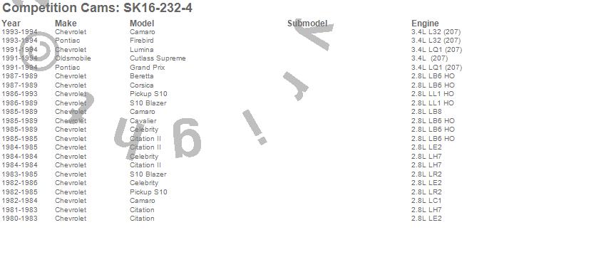 Below is an abreviated list of applications for the High Energy Camshaft Small Kit.