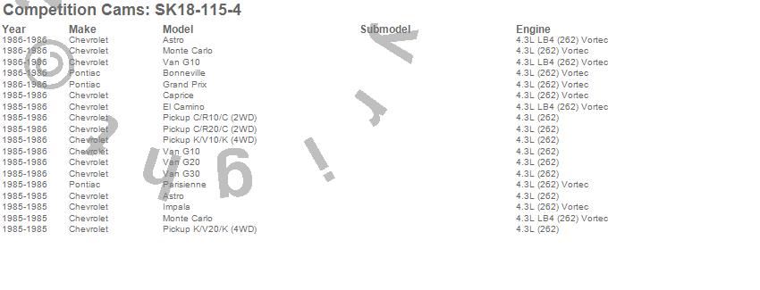 Below is an abreviated list of applications for the High Energy Camshaft Small Kit.