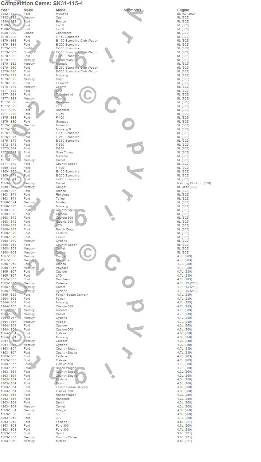 Below is an abreviated list of applications for the High Energy Camshaft Small Kit.