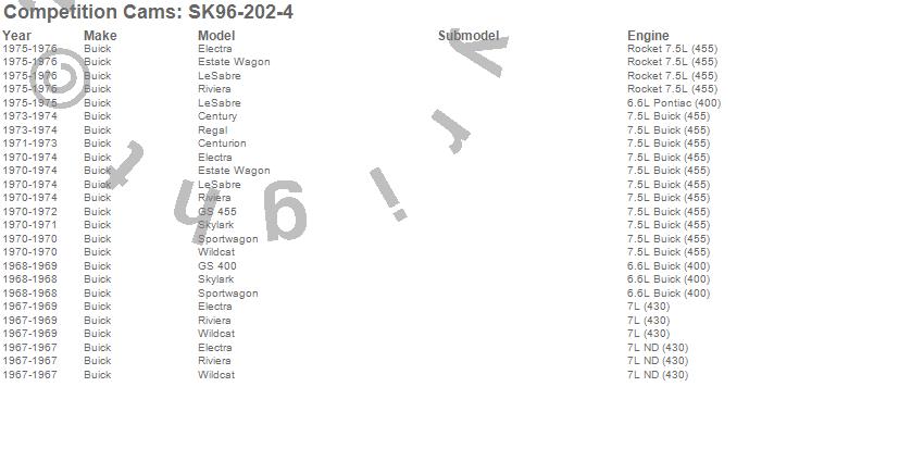 Below is an abreviated list of applications for the High Energy Camshaft Small Kit.