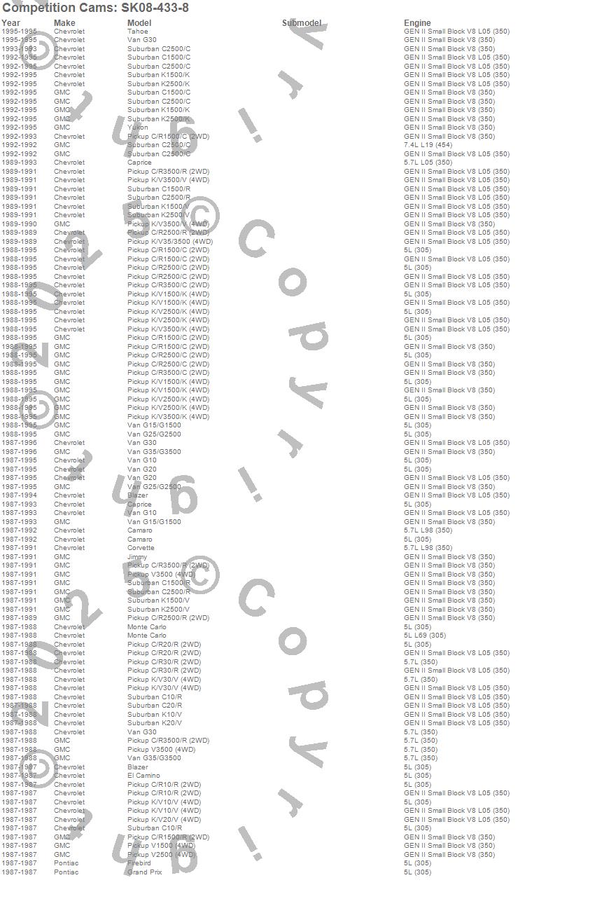 Below is an abreviated list of applications for the Xtreme Energy Camshaft Small Kit.