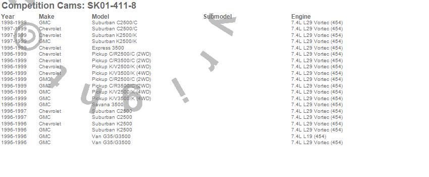 Below is an abreviated list of applications for the Xtreme Energy Camshaft Small Kit.