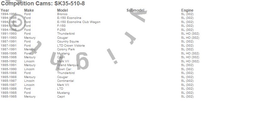Below is an abreviated list of applications for the Xtreme Energy Camshaft Small Kit.