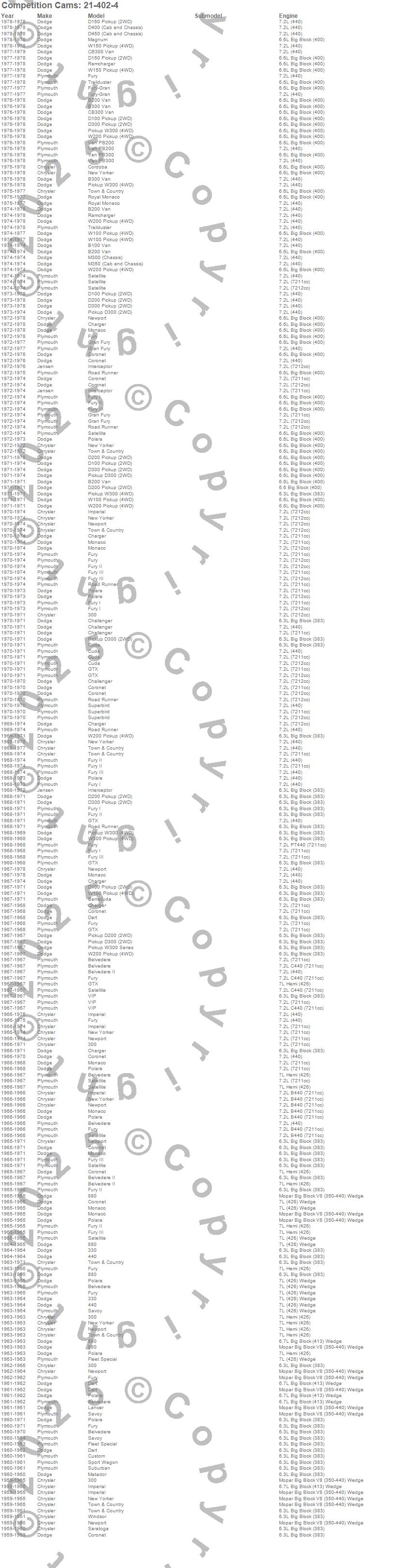 300, 330, 440, 880, B100 Van, B200 Van, B300 Van, Barracuda, Belvedere, Belvedere II, CB300 Van, Challenger, Charger, Cordoba, Coronet, Cuda, Custom, D100 Pickup, D150 Pickup, D200 Pickup more…