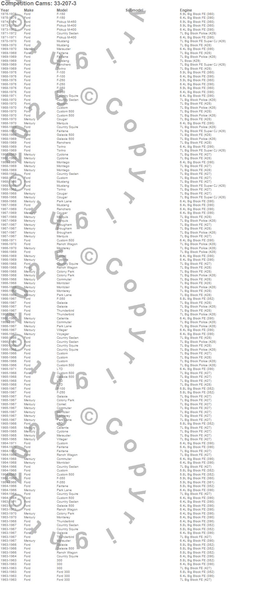 Below is an abreviated list of applications for the Dual Energy Camshaft.