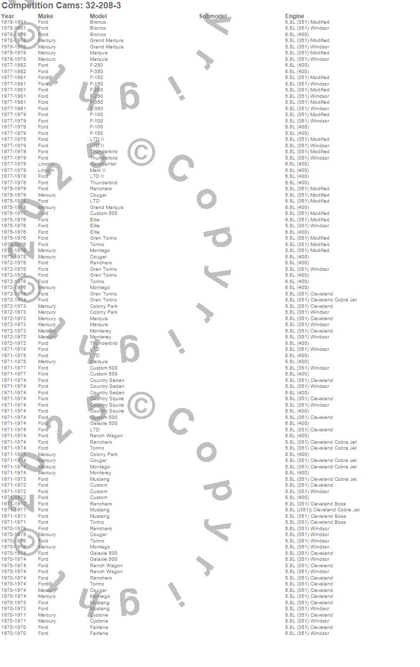 Below is an abreviated list of applications for the Dual Energy Camshaft.