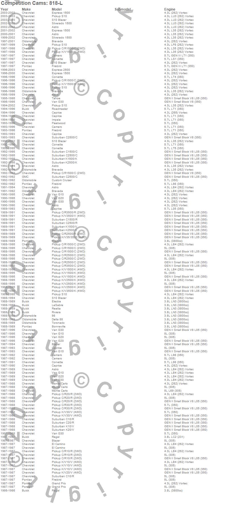 98, Astro, Blazer, Bonneville, Bravada, C1500, C1500 Pickup, C1500 Suburban, C2500 Pickup, C2500 Suburban, C3500 Pickup, Camaro, Caprice, Corvette, Delta 88, El Camino, Electra, Express 1500, Express 2500, Firebird more…