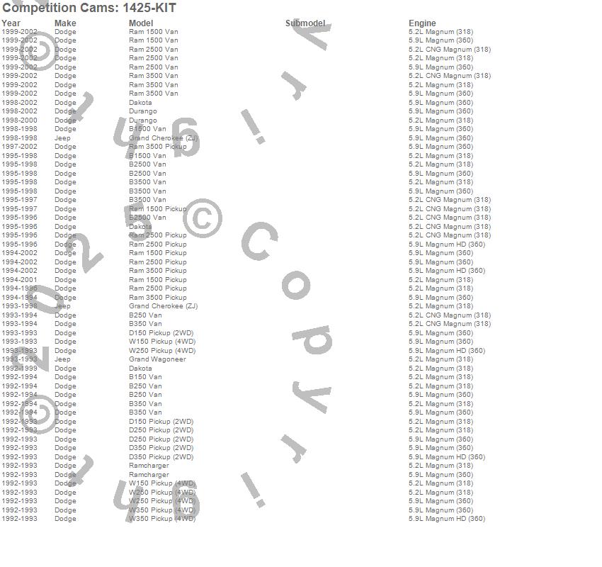 B150, B1500, B250, B2500, B350, B3500, D150 Pickup, D250 Pickup, D350 Pickup, Dakota, Durango, Grand Cherokee (ZJ), Grand Wagoneer, Ram 1500, Ram 1500 Van, Ram 2500, Ram 2500 Van, Ram 3500, Ram 3500 Van, Ramcharger more…