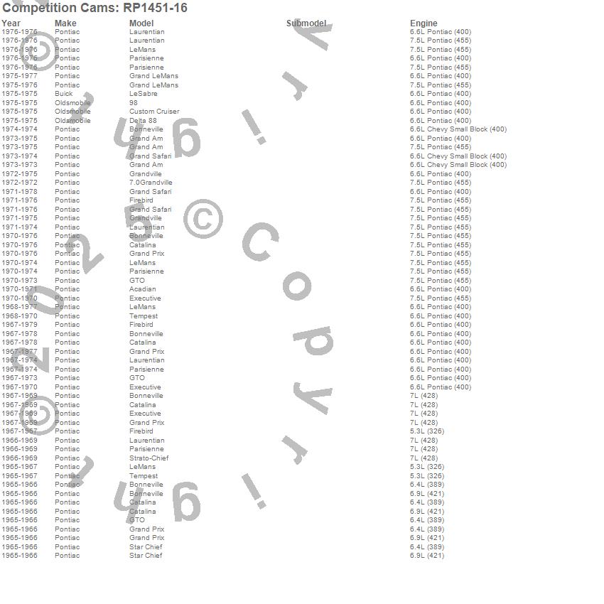 Below is an abreviated list of applications for the Rocker Arm And Pushrod Kit.