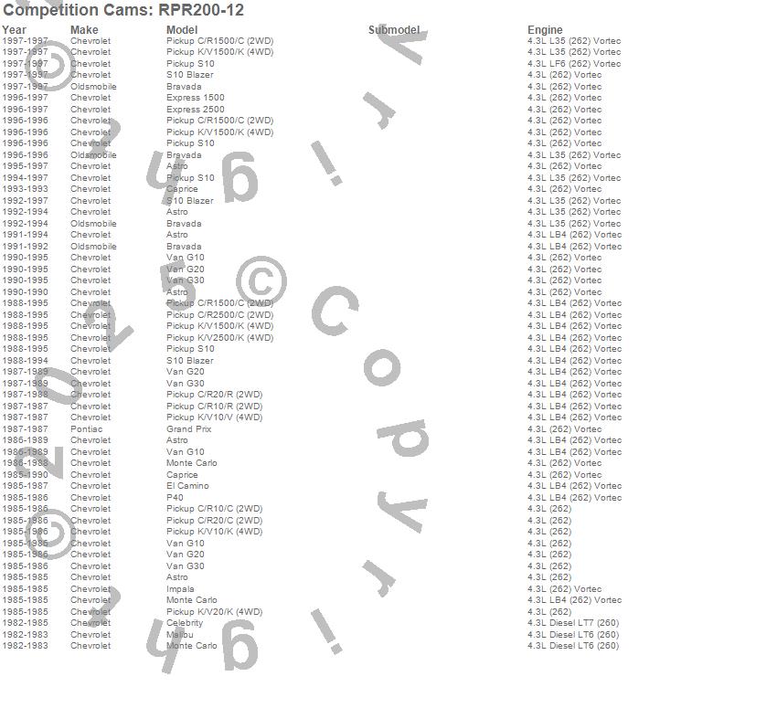 Astro, Bravada, C1500, C1500 Pickup, C2500 Pickup, Caprice, El Camino, Express 1500, Express 2500, G10, G10 Van, G20, G20 Van, G30, G30 Van, Grand Prix, K1500, K1500 Pickup, K2500 Pickup, Monte Carlo more…