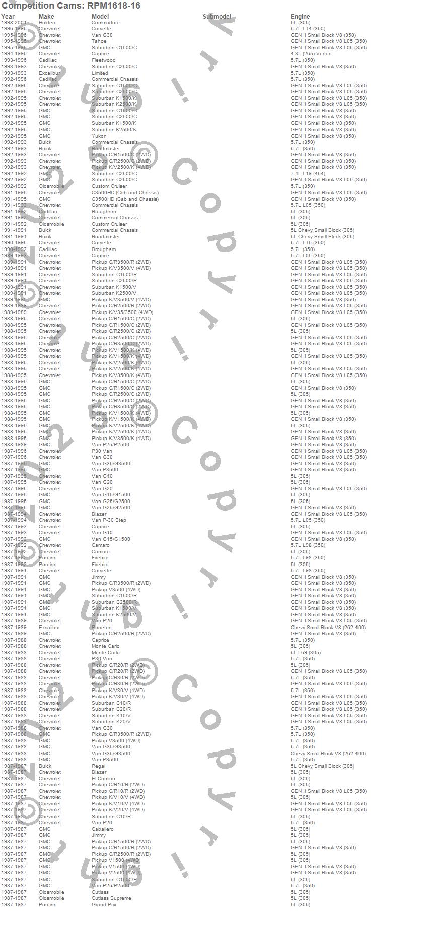 Below is an abreviated list of applications for the Rocker Arm And Pushrod Kit.