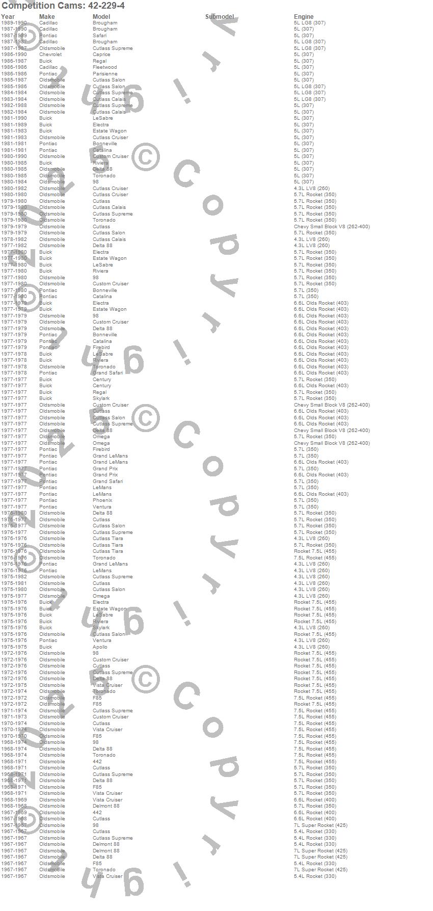 Below is an abreviated list of applications for the High Energy Camshaft.