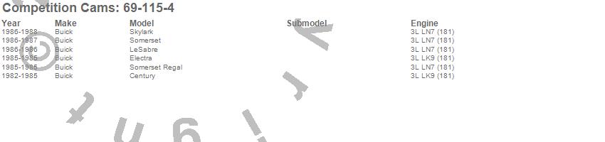 Below is an abreviated list of applications for the High Energy Camshaft.
