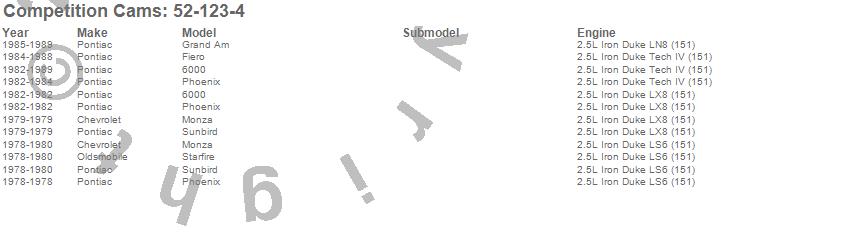 Below is an abreviated list of applications for the High Energy Camshaft.