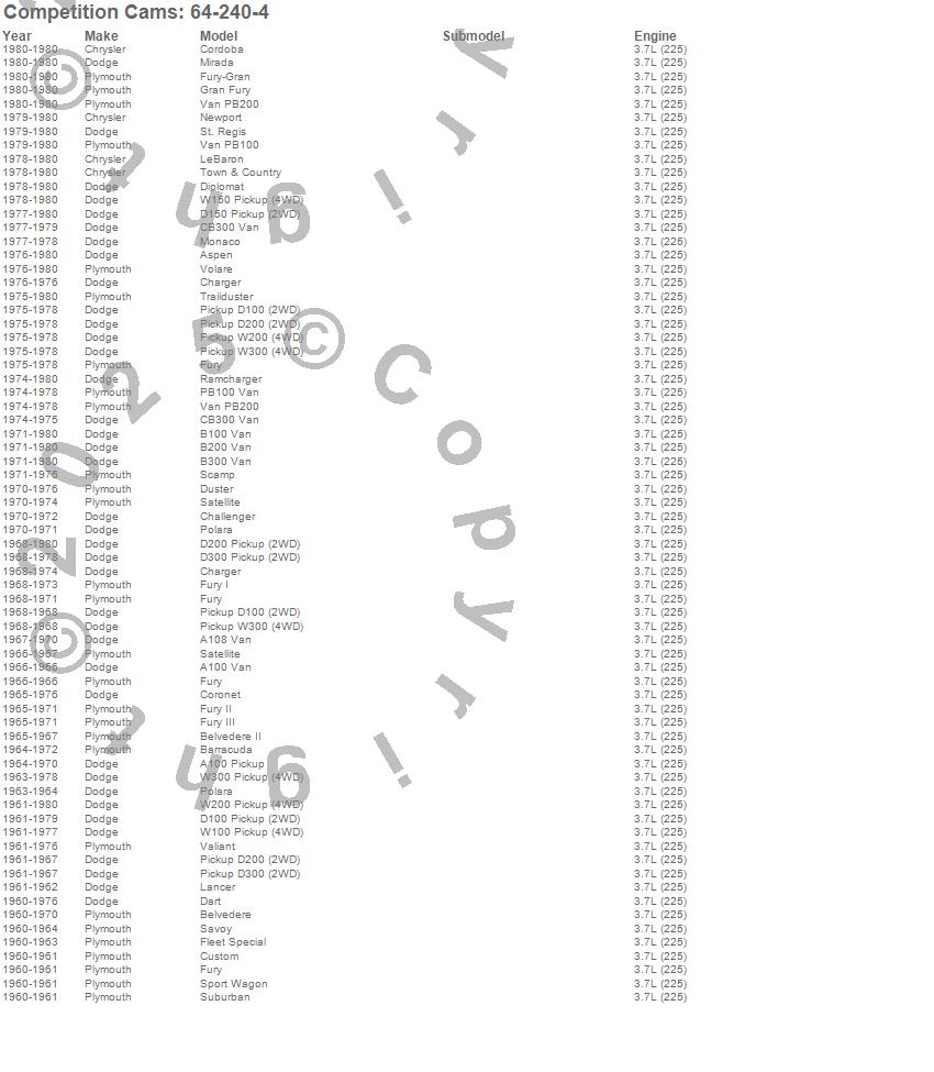 Below is an abreviated list of applications for the High Energy Camshaft.