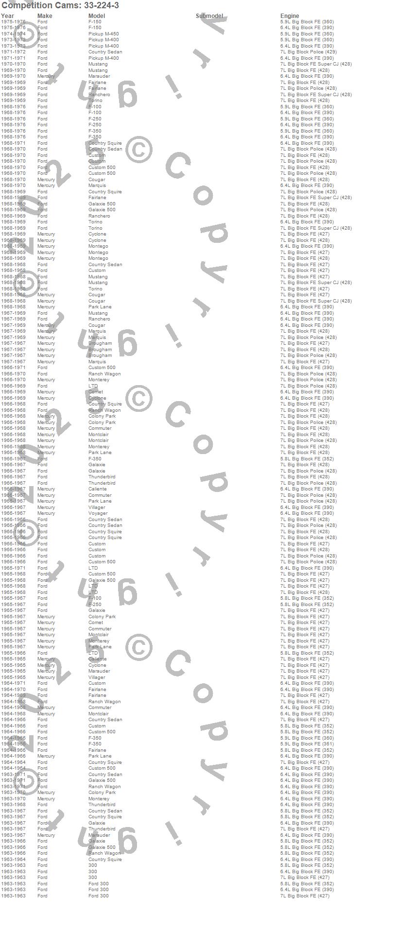 Below is an abreviated list of applications for the High Energy Camshaft.