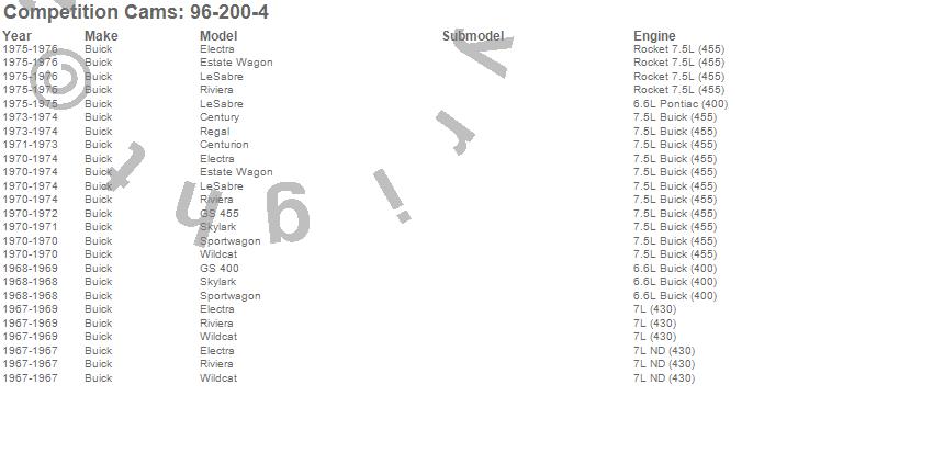 Below is an abreviated list of applications for the High Energy Camshaft.