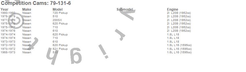 Below is an abreviated list of applications for the High Energy Camshaft.