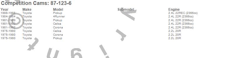 Below is an abreviated list of applications for the High Energy Camshaft.