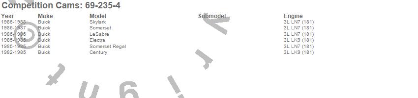Below is an abreviated list of applications for the High Energy Camshaft.