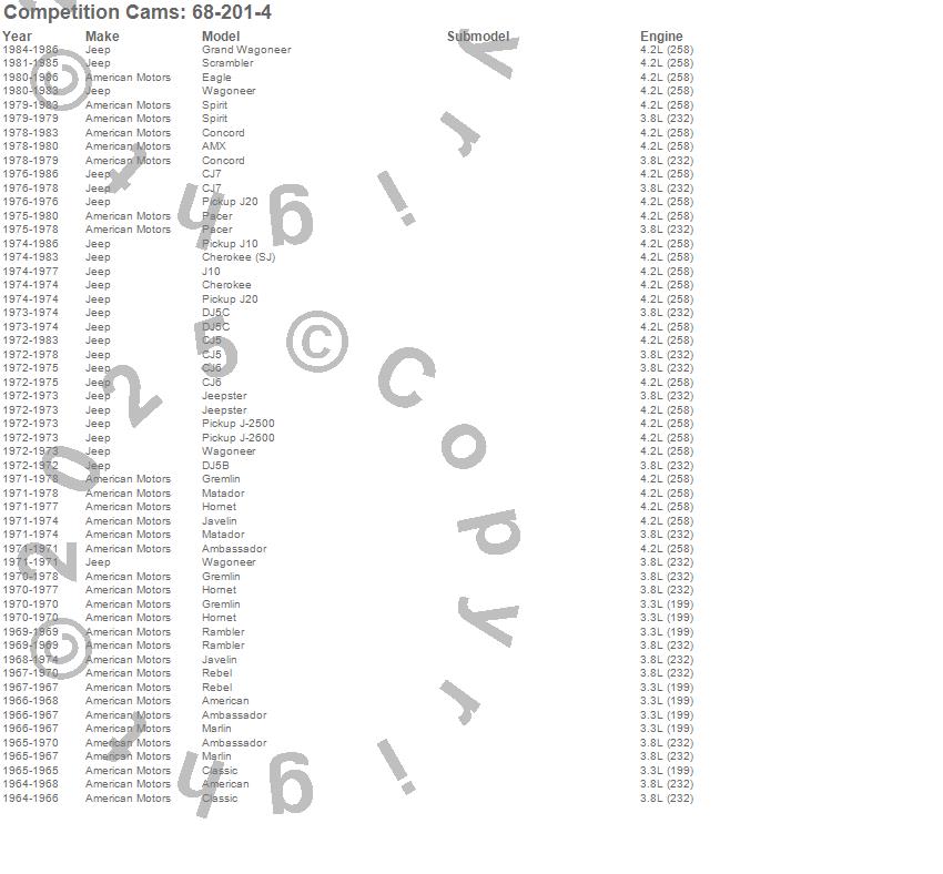 Below is an abreviated list of applications for the High Energy Camshaft.